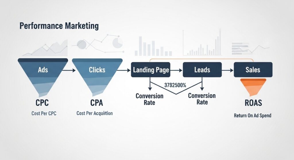 Performance marketing is a digital marketing strategy that involves paying for results, for example, clicks, leads or sales. This is different from traditional marketing since all marketing campaigns are trackable. Therefore, we can optimize our marketing campaigns’ goals for better returns on investment(ROI). Performance marketing involves using Google Ads, Meta Ads or LinkedIn Ads for targeted marketing campaign for your business. Using these metrics helps a business know how efficiently it is spending money on advertisements.