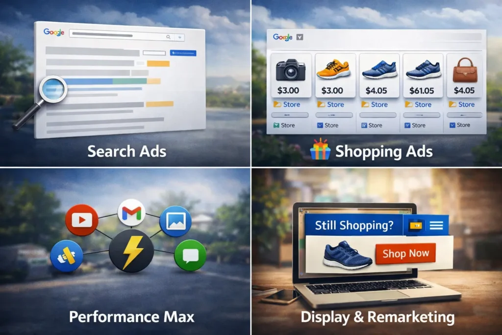 This is where Google Ads comes into play to help with the growth of complete eCommerce industry. This is Google Ads allows brands to reach users who are actively searching for products with the help of Google Shopping Ads, Search Ads and Performance Max ads. This helps to attract potential buyers to your business.